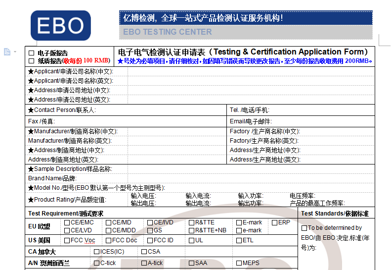 深圳市億博科技有限公司是專業(yè)從事工業(yè)消費(fèi)類產(chǎn)品安全認(rèn)證、電磁兼容測(cè)試、化學(xué)材料檢測(cè)與分析等服務(wù)。目前我們檢測(cè)認(rèn)證項(xiàng)目的產(chǎn)品范圍覆蓋了無(wú)線通訊設(shè)備、機(jī)械設(shè)備、家用電器、音視頻設(shè)備、信息技術(shù)設(shè)備、玩具、醫(yī)療器械、建筑材料、個(gè)人防護(hù)用品等等。我們將竭誠(chéng)為您提供CE認(rèn)證、FCC認(rèn)證、RoHS認(rèn)證、REACH認(rèn)證、RTTE認(rèn)證、MEPS認(rèn)證等等國(guó)際檢測(cè)認(rèn)證。